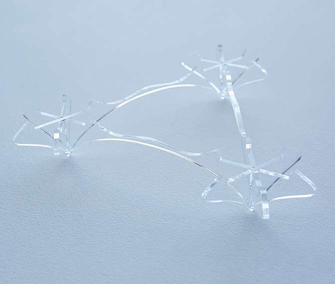 レーザーカットによって垂直に切断されるデータを組み合わせたときに60°で固定されるよう考えられたものが浮安
